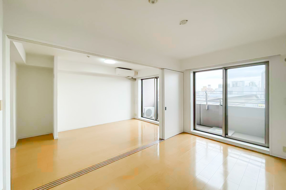 ワイドなバルコニーから光も取り込んでくれるので、広々ワンルーム使いがおすすめです◎