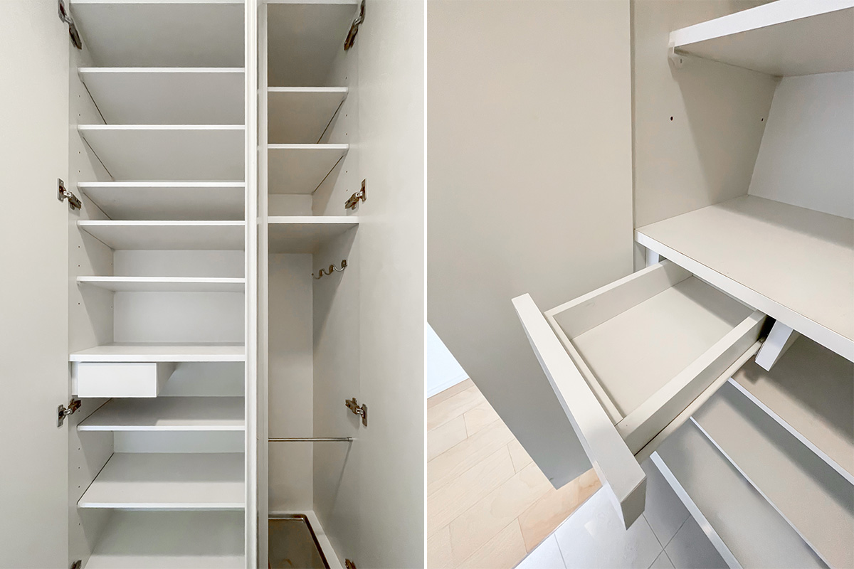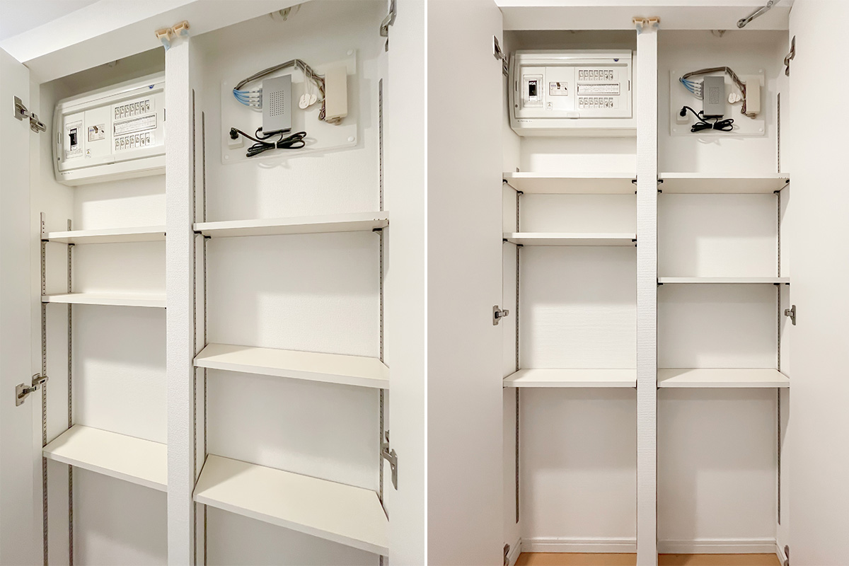 廊下の収納の奥行きは深くありませんが、ストック収納としては十分機能してくれそうです。