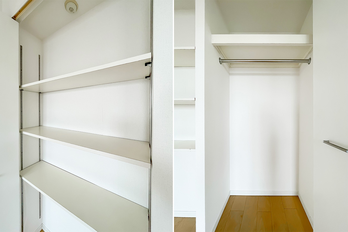 収納は洋室にクローゼット、廊下に靴箱とは別に可動棚収納付きです。