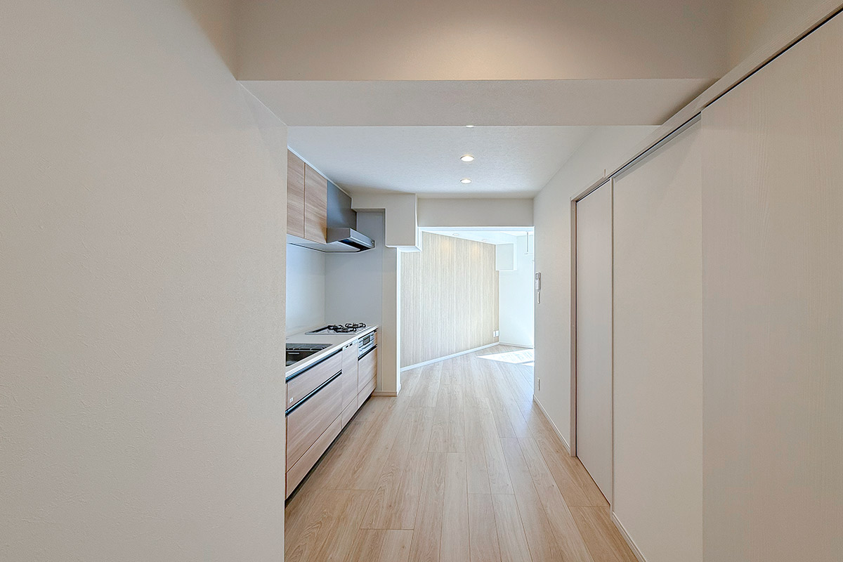 お部屋は38.3㎡の1LDKタイプ、2022年6月にフルリフォームされた室内はまだまだ清潔さが維持されています。