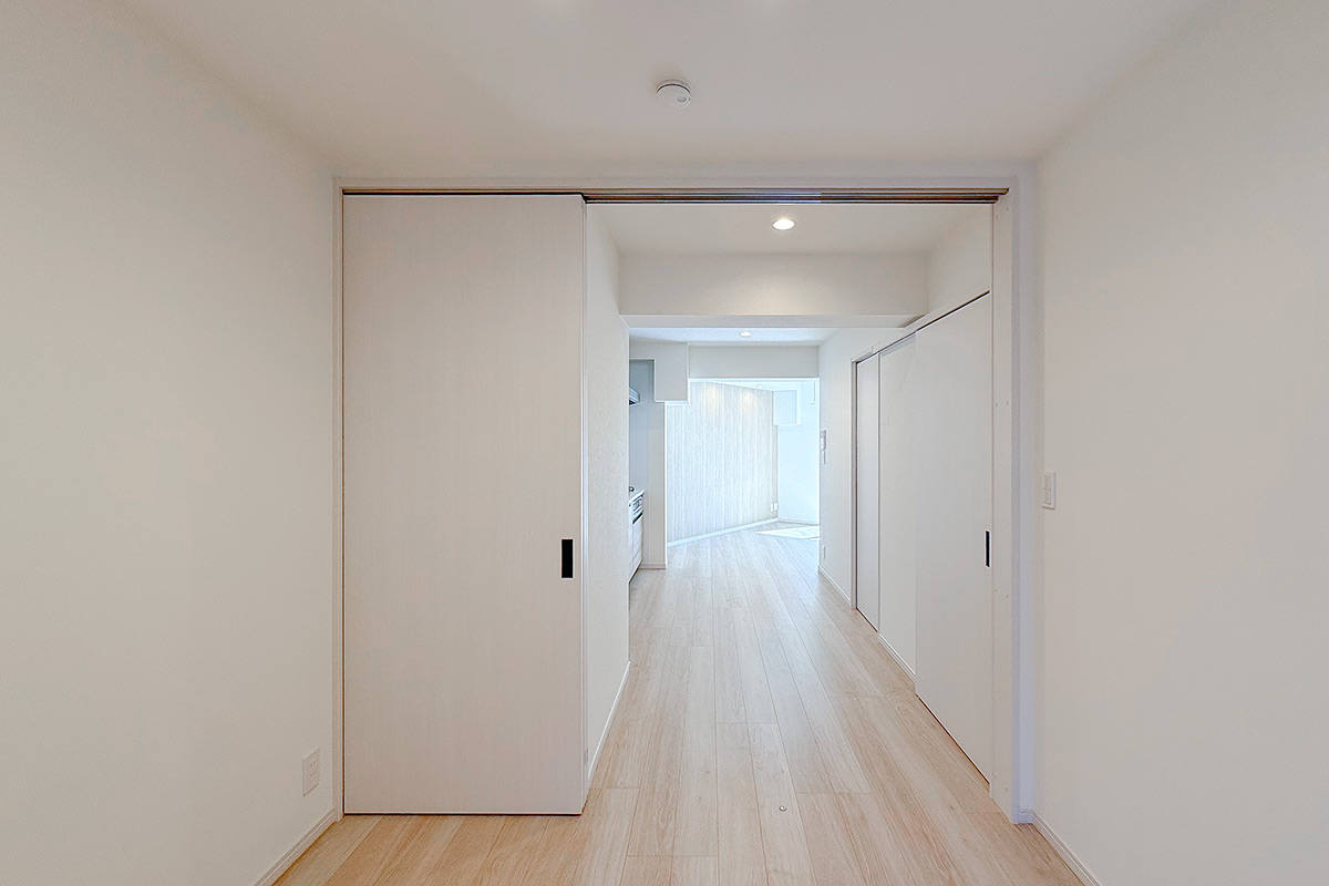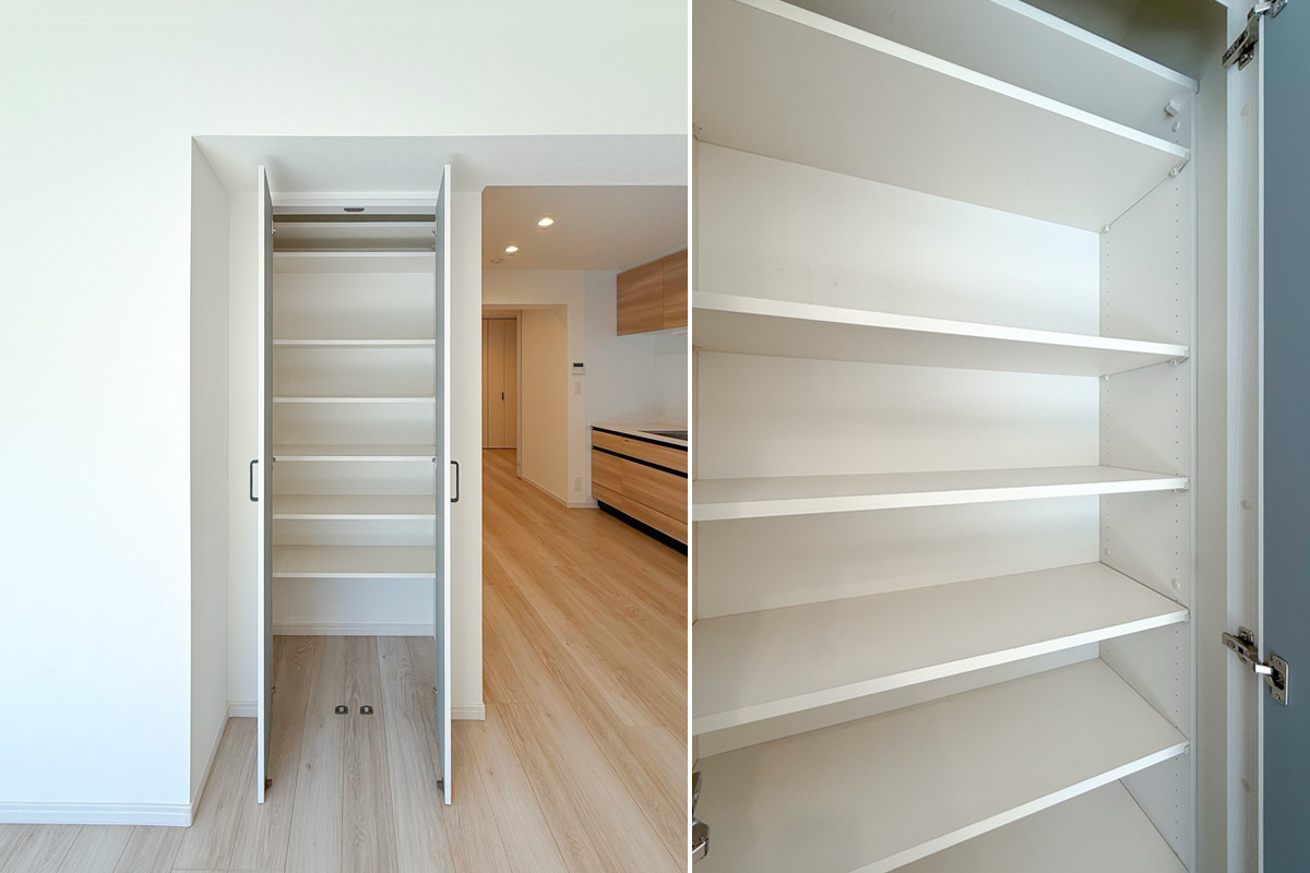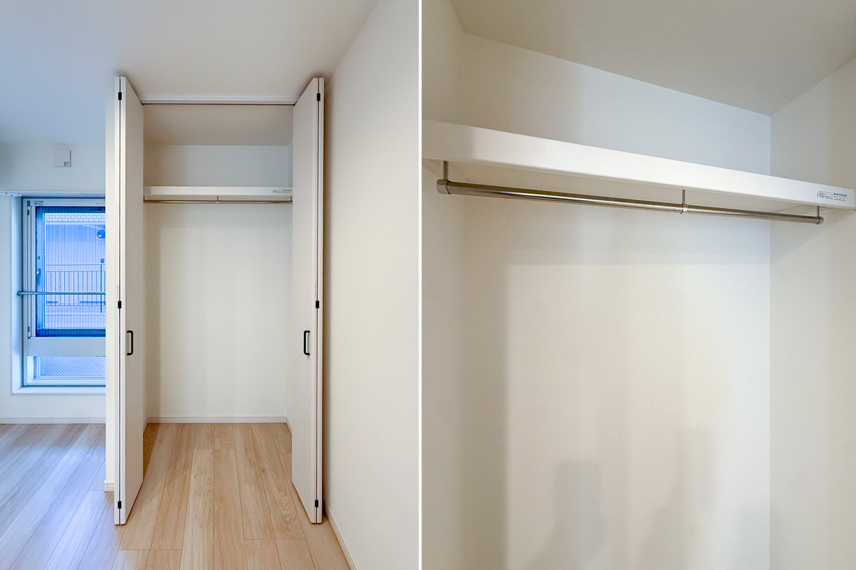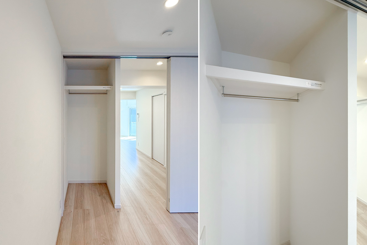 クローゼットはひとつと思いきや、スライドドアを動かすともうひとつクローゼットが出現!
