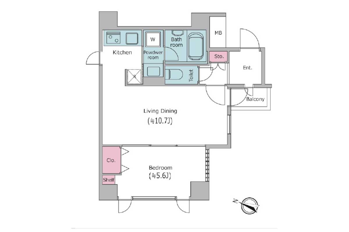 お部屋は10階、約37㎡の10.7帖+5.6帖の1LDK。