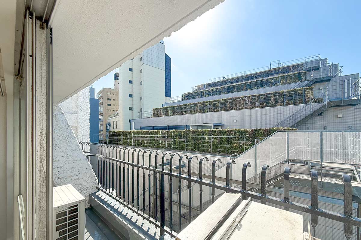 陽当たりが良く、アイアンフレームが作る影は秀和のバルコニーではお馴染みの風景。