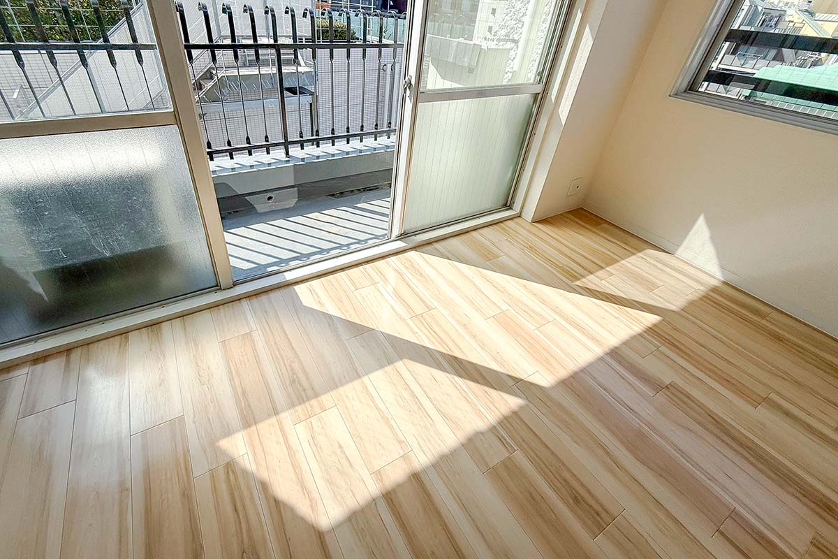 二面採光の洋室は南西側のバルコニーから光がしっかり差し込む明るい空間!