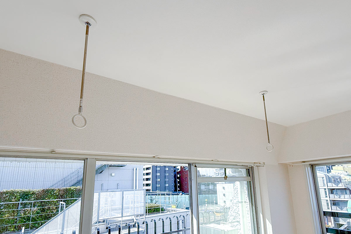 バルコニーでの物干しは禁止なので、洗濯物は窓際の物干しラックや浴室乾燥機をフル活用。