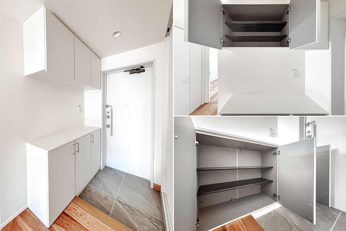 玄関ホールに姿見があったり、廊下やリビング、水回りのちょっとした収納が多めに設けられていたり…