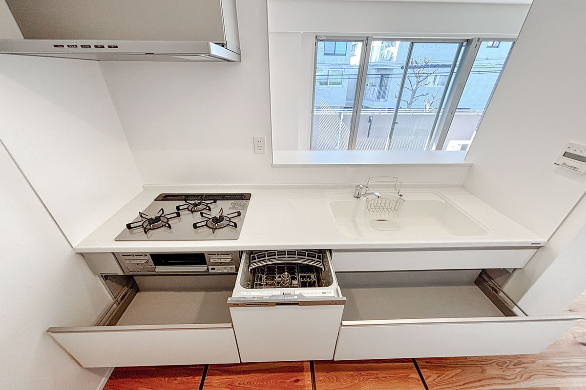 キッチンは広々シンクで作業しやすく、QOLを上げてくれる食洗機付き!
