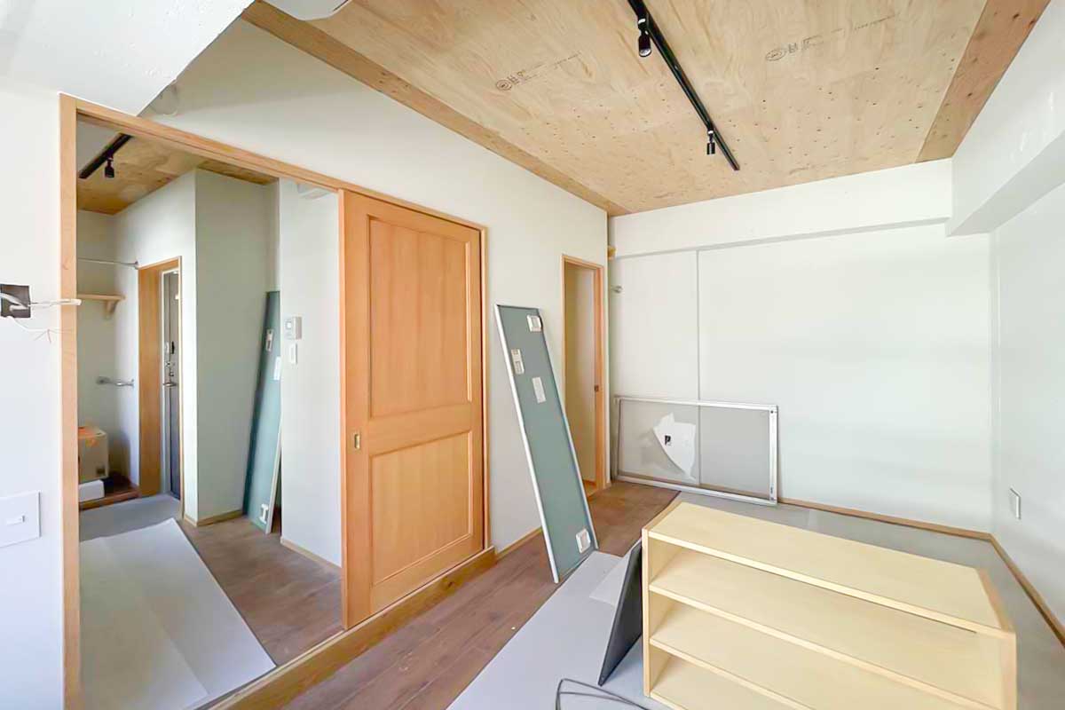お部屋はシンプルな四角い形ですが、木の建具が柔らかい雰囲気に。