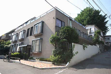 3階建てで総戸数5戸という小規模なマンションです。ベージュがかった色合いのタイル張りの外壁、規則的に配置された真四角の出窓、庇付のくり抜かれたエントランスなど、ヴィンテージ感満載の風貌です。