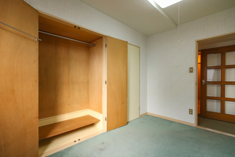 ただ、リノベーションが不思議な感じで、洋室4帖とリビングは絨毯で、洋室5.6帖はフローリングで、天井も抜いています。