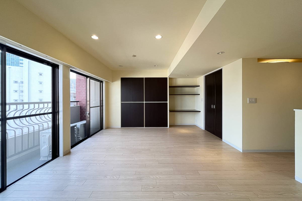 19.2帖の、かなり広々としたつくり。ベランダから見える空はとても広く感じます。