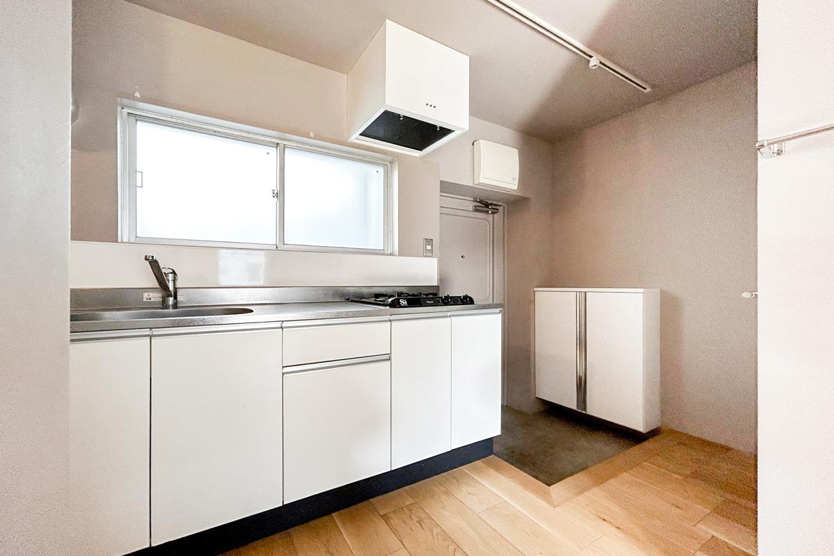 キッチンには2口のガスコンロがついているのでシンプルながら使いやすく、洗濯機置き場も近いので家事動線もよさそうです。