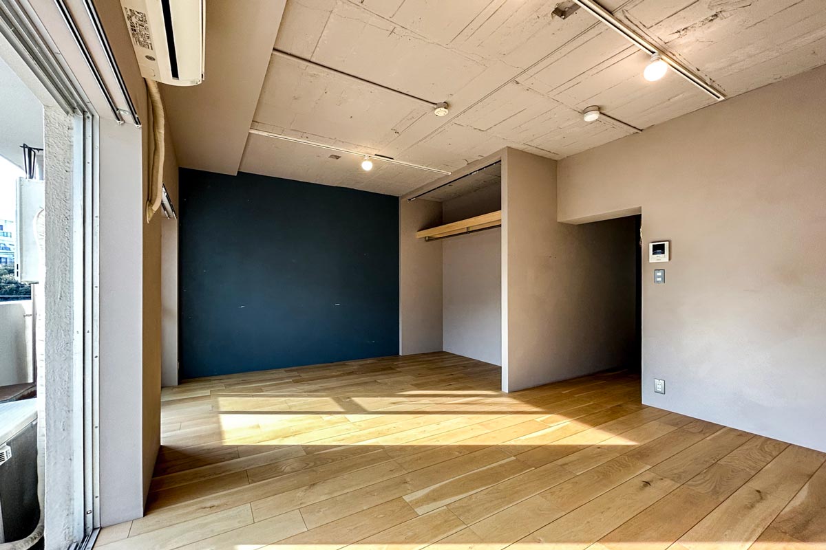 お部屋は30.24㎡の1K。南側に大きな窓があるので陽当たり良好で、前面は駐車場になっていますので視界が開けています。
