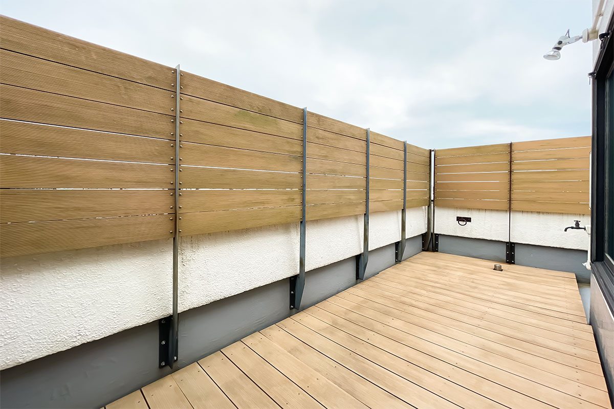 左右前方と木製ルーバーで目隠しになっているため、周囲の視線も気にせず過ごせるのもうれしいポイント。
