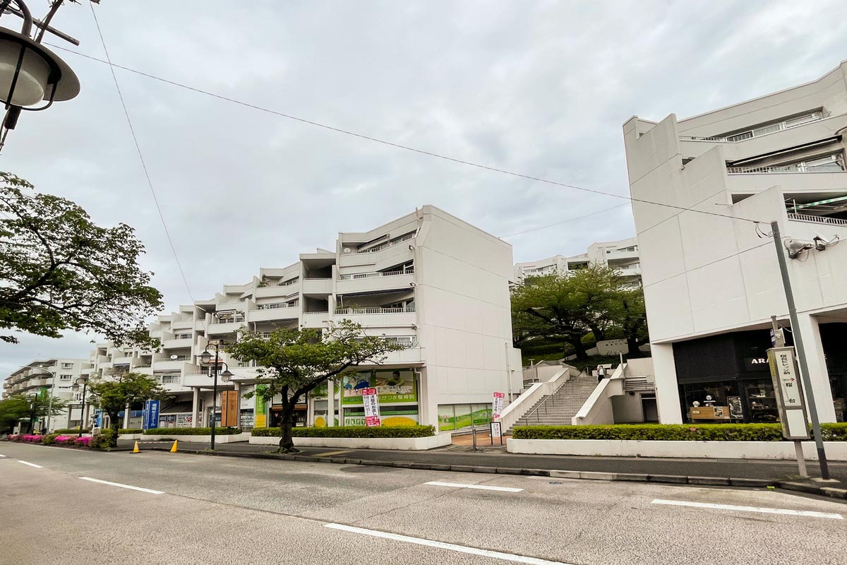 マンションの造りとしては、同じく内井昭蔵氏が設計した「宮崎台ビレジ」や、すぐ近く建っている「桜台コートビレジ」と似た、雁行型のデザイン。緑豊かな傾斜地に建てられ、4つの棟から形成されています。