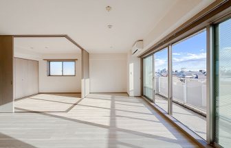 LDKは18.6帖と広々。2面バルコニーで窓も大きく、世田谷を見渡す眺望。