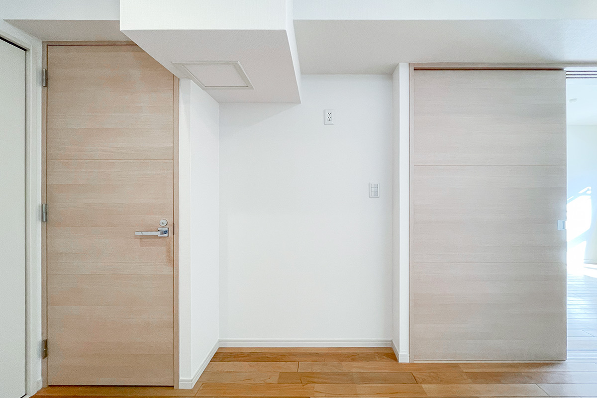 LDK・洋室・洗面所・トイレとお部屋全体が無垢床で、裸足で歩いても温かみある質感です。
