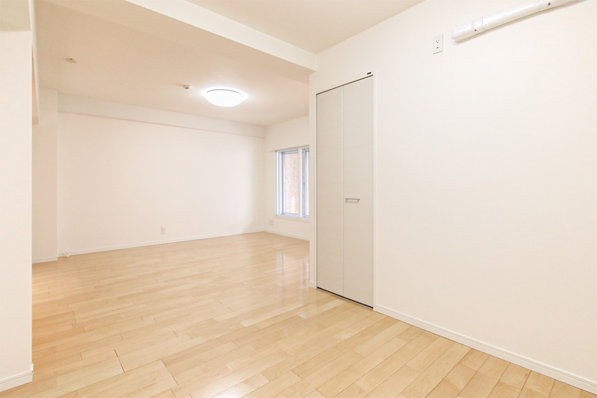 壁面にはハンガーパイプの2面クローゼット付き。