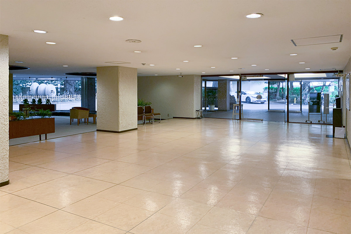 エントランスには車寄せもあり、広々とした共用ロビーには待合室も設けられているなど、古きよきゆとりある風景が随所に見られます。