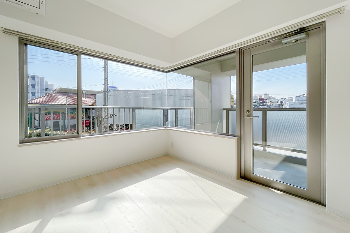 南西向き、L字の窓から光をたっぷりと取り込みます。リビング・キッチンからの眺め良好です◎