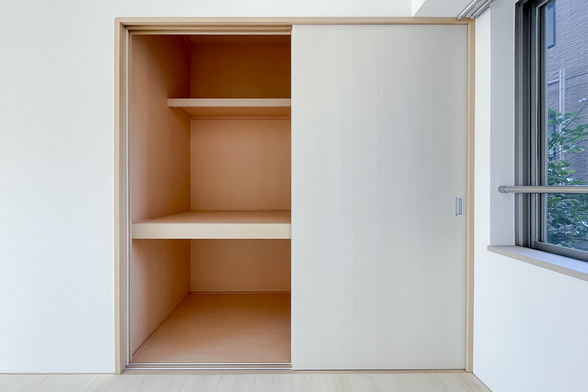 玄関側の洋室は収納がないので、仕事部屋・納戸としての使い方も良さそうです。