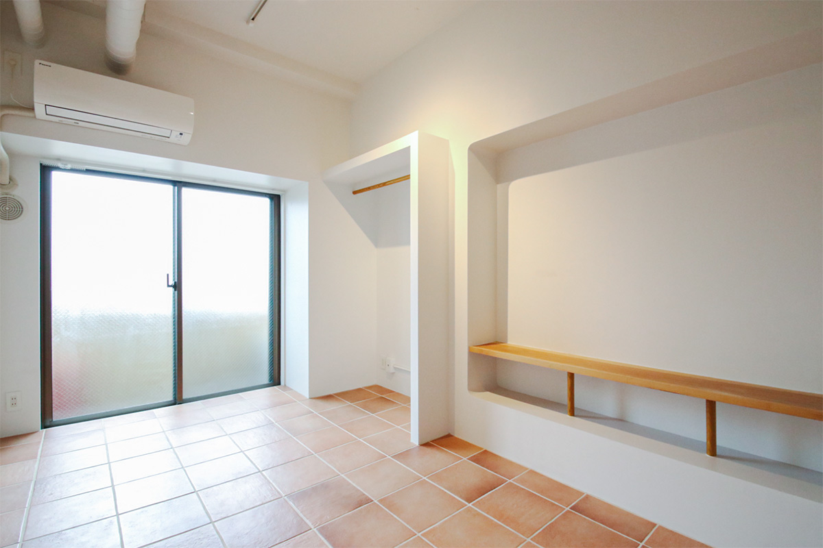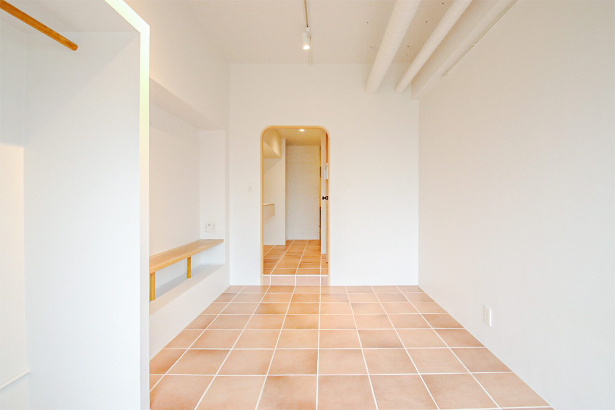 暖かみを感じるテラコッタカラーのフロアタイル。
