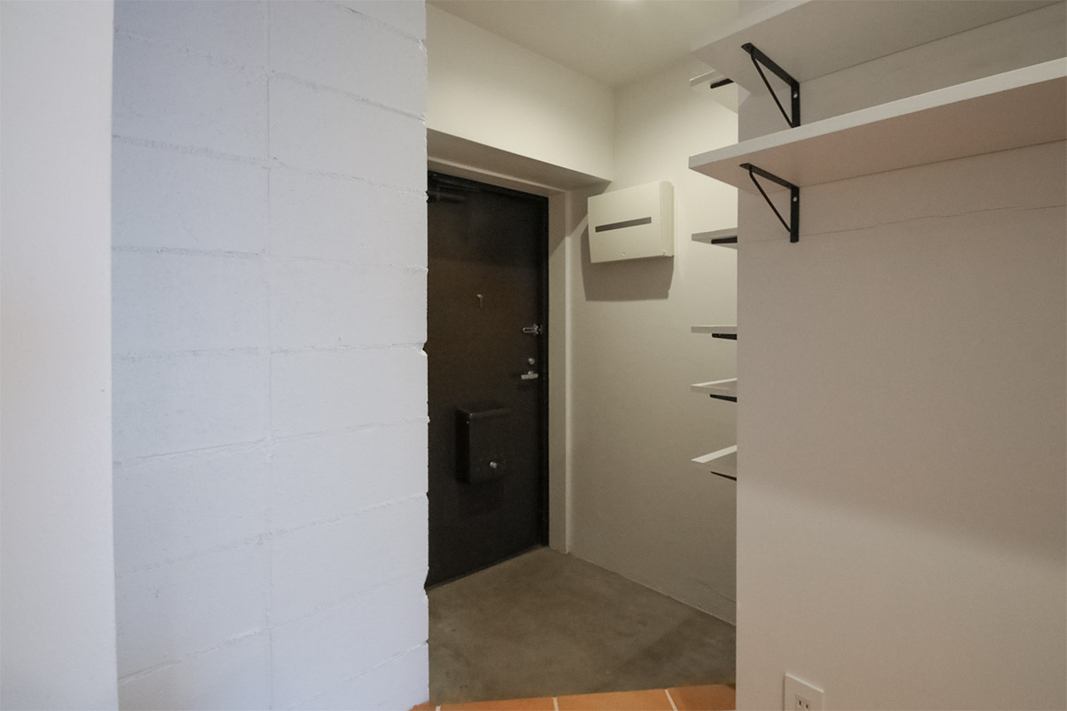 シューズラックもオープンタイプ、高さを調節すればブーツなどの収納も余裕です。