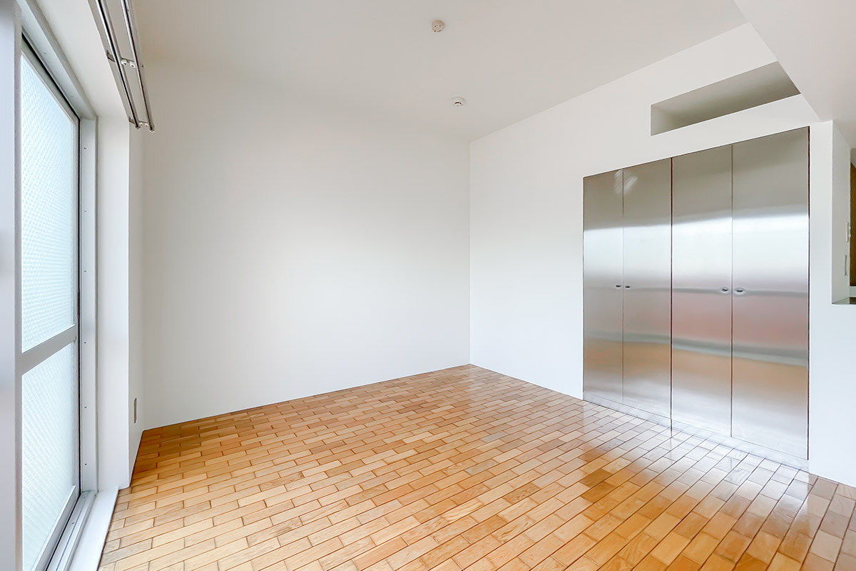 収納は壁に埋め込まれているので、凹凸がなく家具配置の邪魔もしません。ボリュームは1人分…たくさん洋服を持っている方は別にハンガーラックや収納付きベッド等の工夫が必要です。