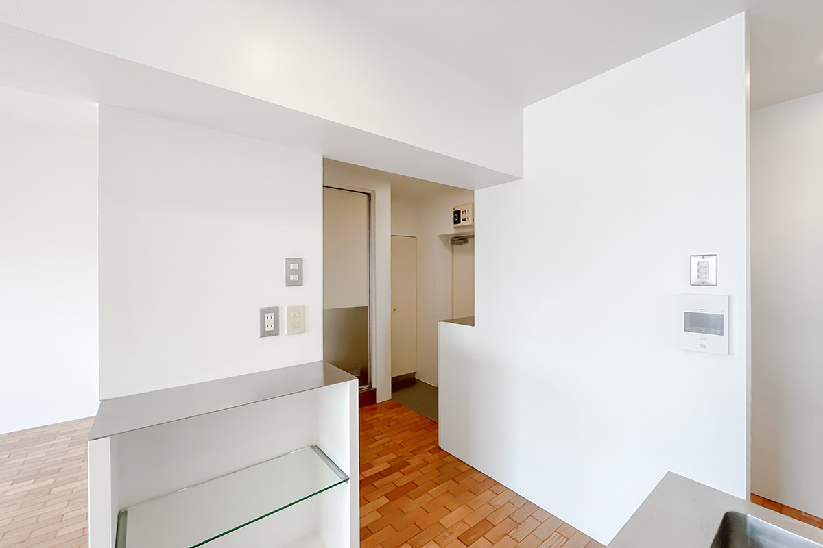 ステンレス素材が随所にあしらわれており、シュっと背筋が伸びそうなスタイリッシュな雰囲気もありますが、床は少しレトロな味わいある風合いも。