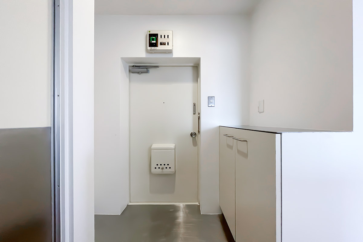 玄関床はキッチンや収納扉に合わせて、ステンレスのような素材。珍しいですね。収納は左右にあるので、靴をたくさんお持ちの方にはうってつけ。靴が多くなければ、奥行きのある方はストック収納に活躍してくれることでしょう。