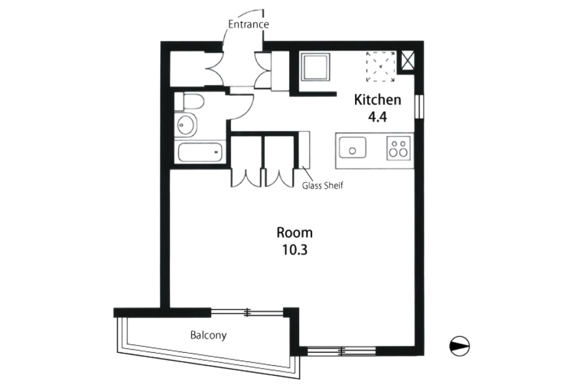 10帖ワンルームなので、ベッドスペース+ダイニングorソファor仕事用の幅広作業スペースのいずれかの配置でしょうか。