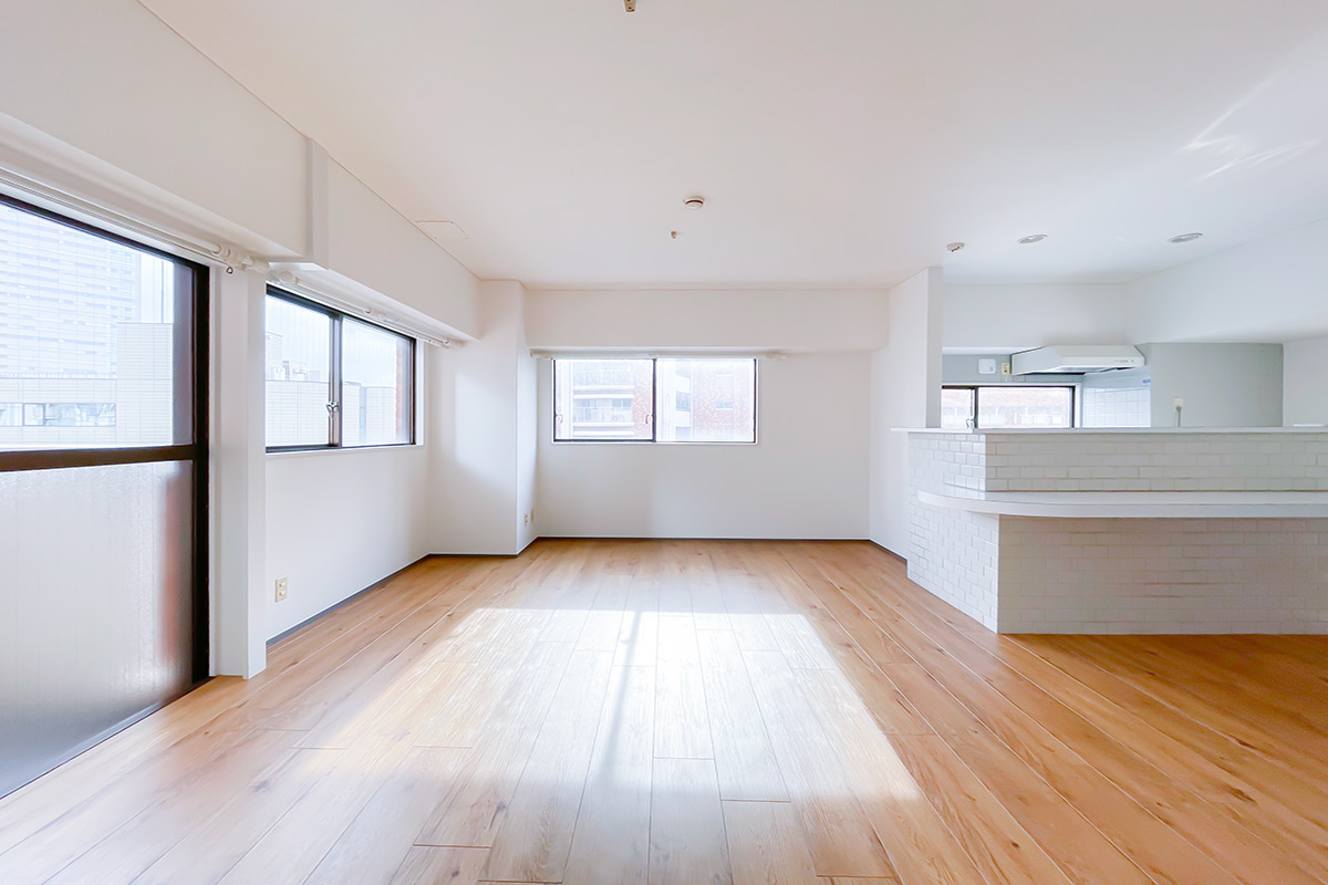 収納はクローゼットにお任せして、家具はとっておきの物を揃えたくなりますね。代官山・恵比寿にはたくさんのインテリアショップが揃っているので、この空間に合わせて新調しても良さそう。夢が広がります!