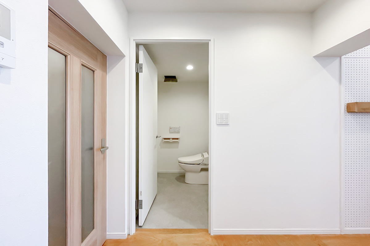 リノベ空間で落ち着いた空間。大空間もいいけれど、実用的に仕切られていて、暮らしやすそうなお部屋です。