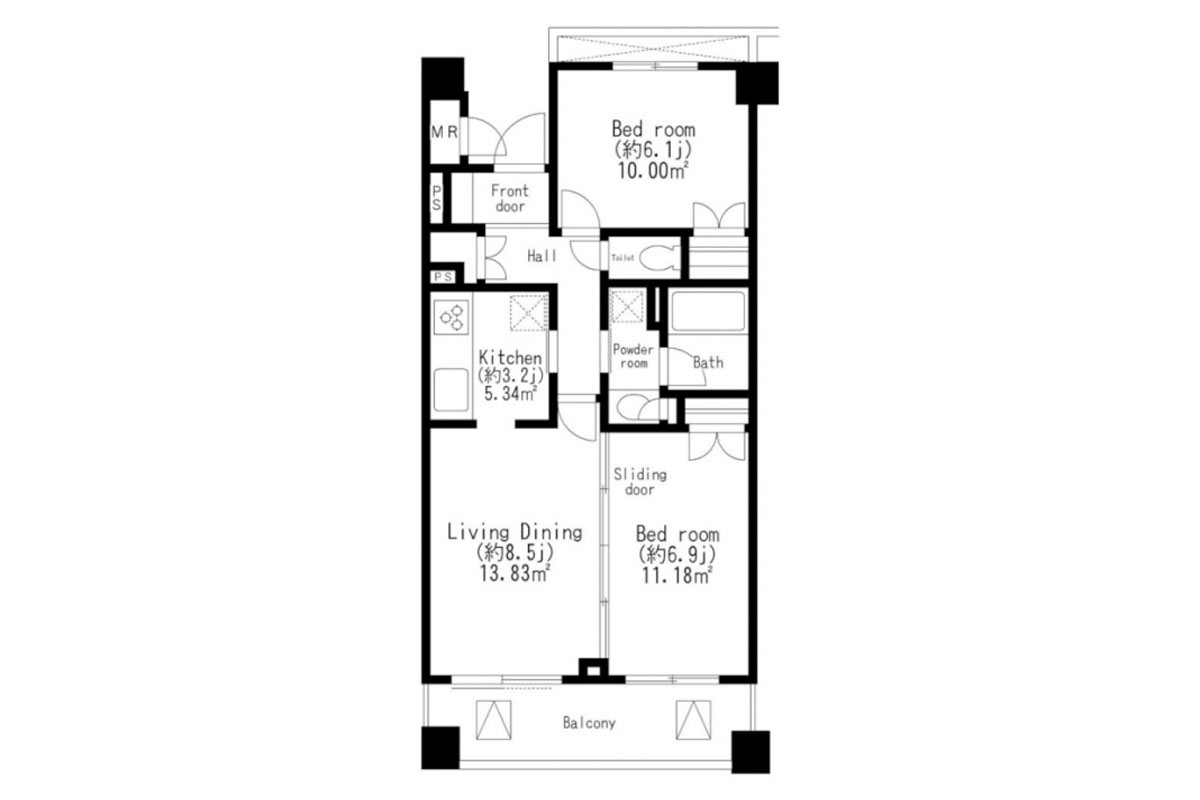 50㎡台後半の2LDKは、2~3人暮らしにちょうどよい広さ。