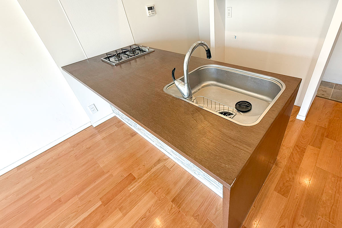 作業台にゆとりがあり、無駄の少ないシンプルな作りに仕上がっています。