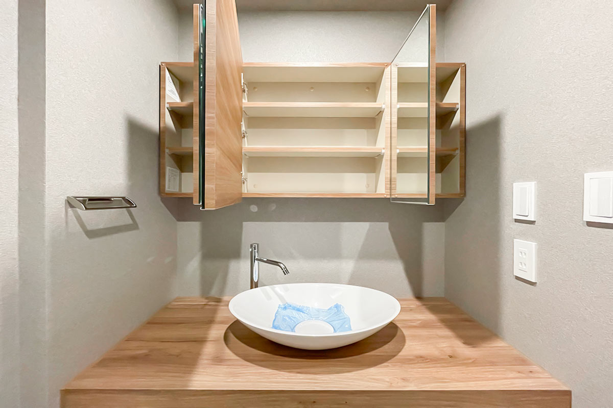 ゆったりとした浴槽・ワイドな三面鏡の洗面台もゆとりを感じさせてくれます。