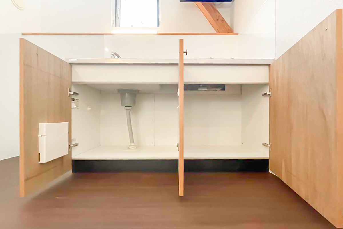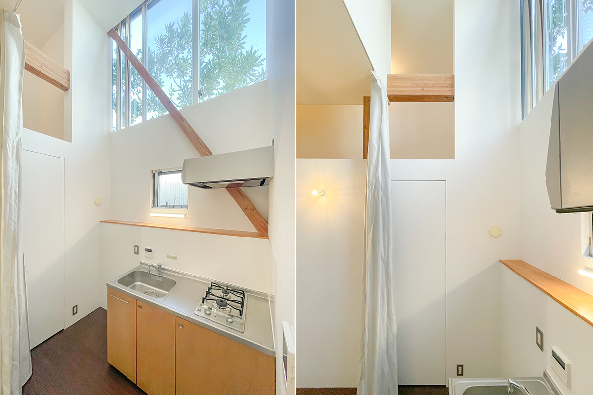 キッチンは天井が高く、大きな窓なので、キッチンに明るい光が降り注ぎます。