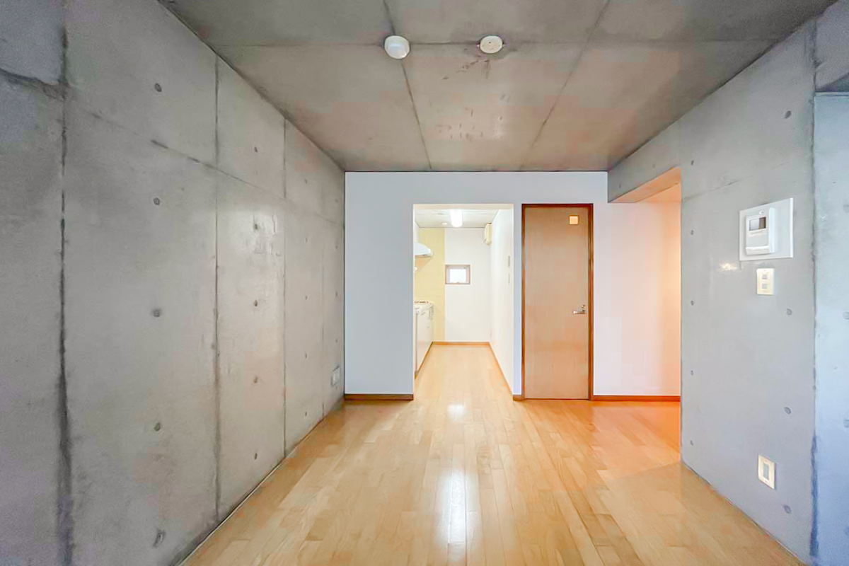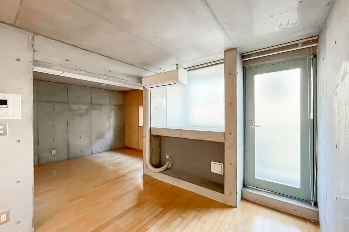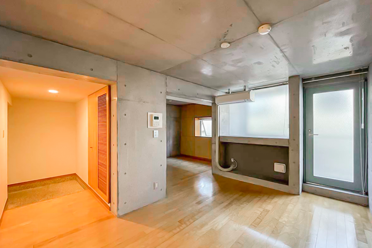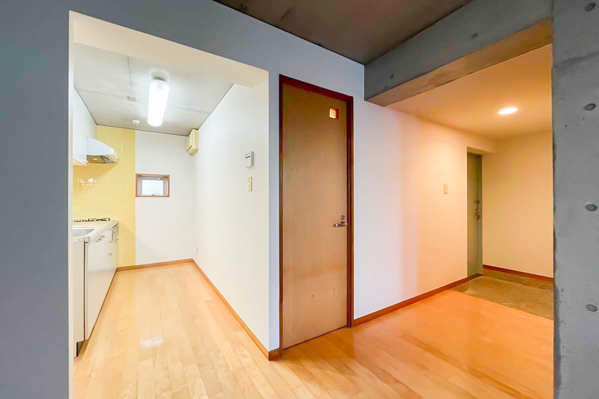 部屋は一体空間ですが、玄関ホール/廊下もあって、玄関開けてすぐに部屋全体がパッと見えてしまう心配もない形。