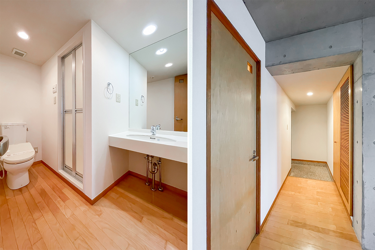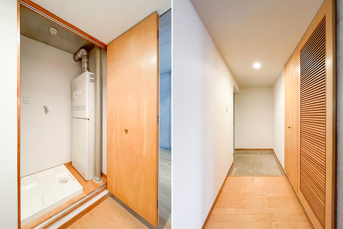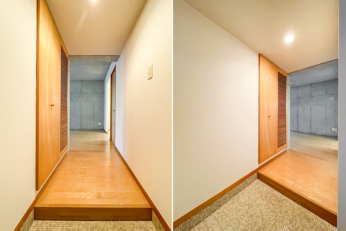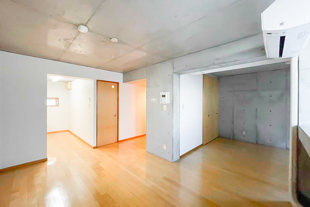 部屋は一体空間ですが、玄関ホール/廊下もあって、玄関開けてすぐに部屋全体がパッと見えてしまう心配もない形。