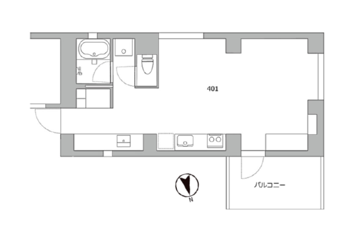 ご紹介するお部屋は約40㎡、まるで海外のような広めのワンルーム。