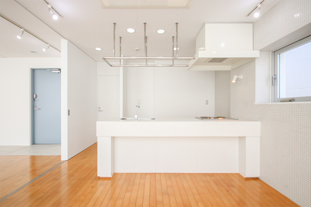 カウンター部分にスツールなどを置いて簡易な飲食スペースとしてもよいですね。