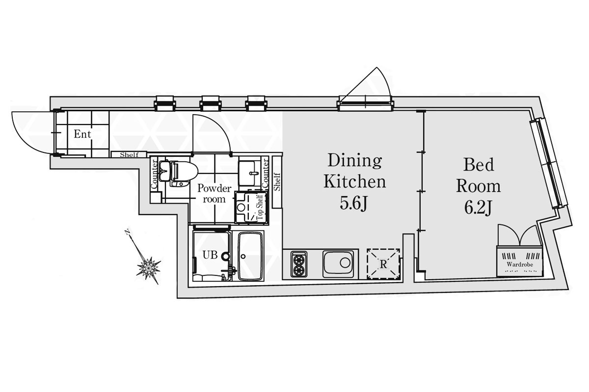 間取りは7.3畳のダイニングスペースと4.7畳の寝室。