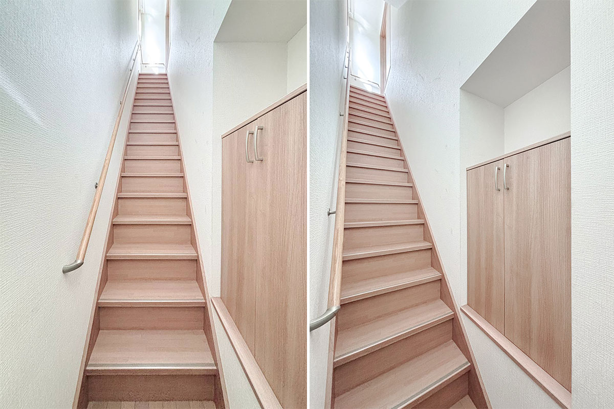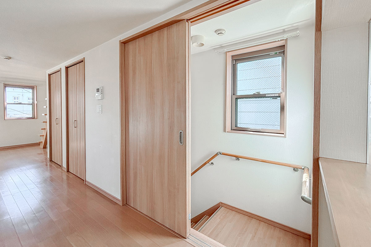 玄関からは階段を上って居室へ向かいます。