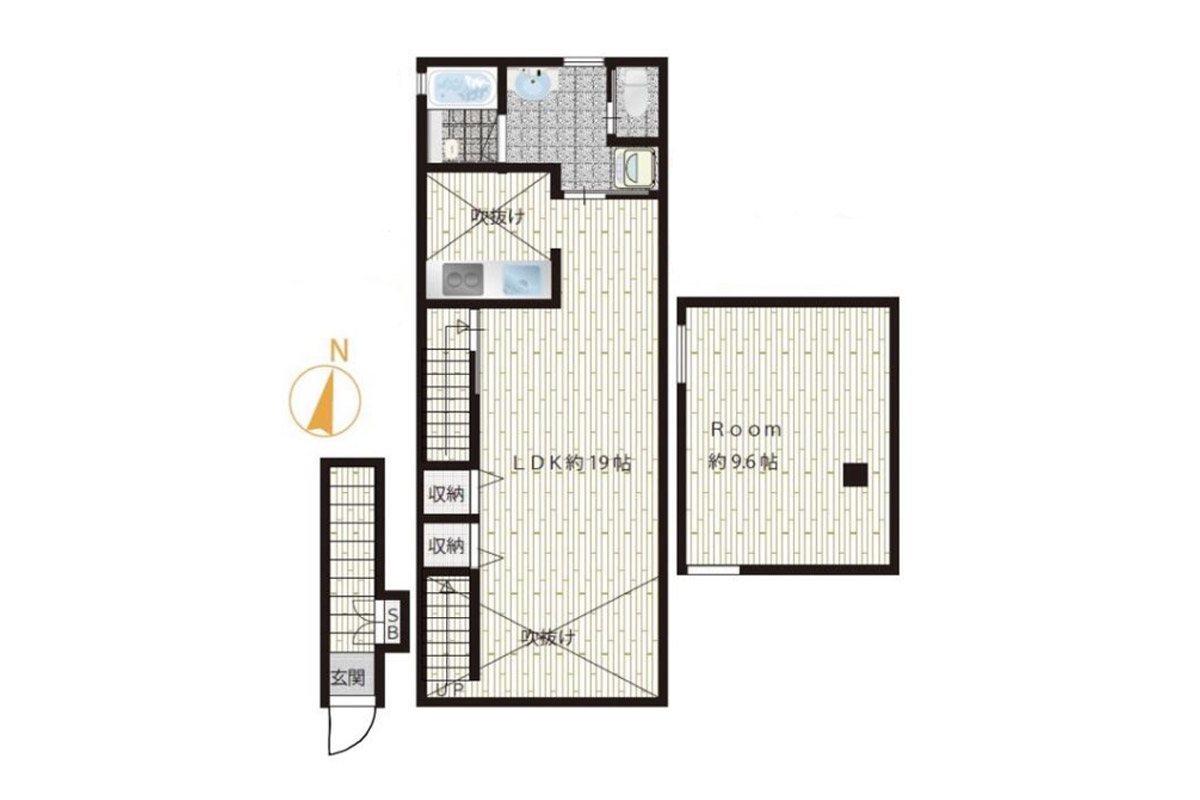 下階をワンルームとして、上階はワークスペースや趣味部屋なんて使い方も気分が変わってよさそう。