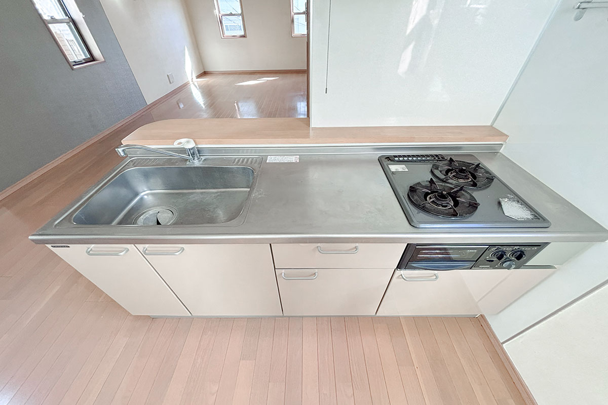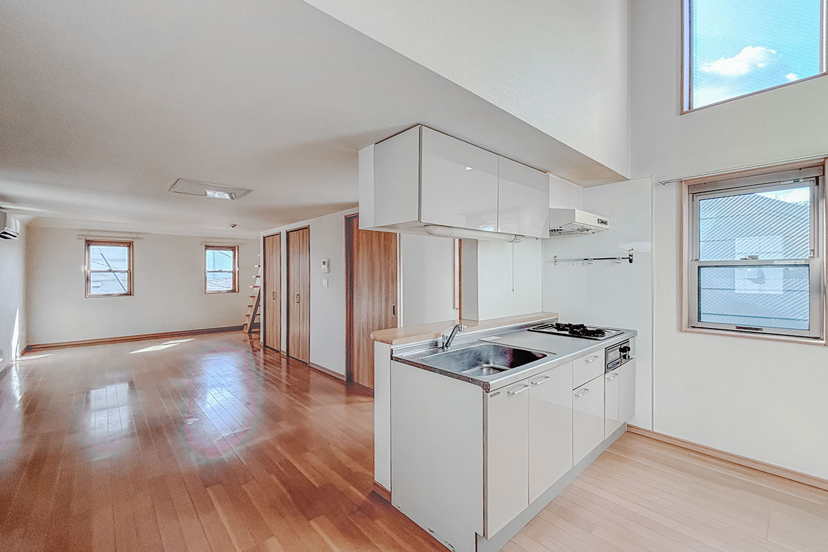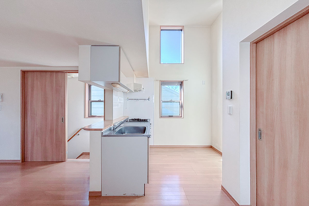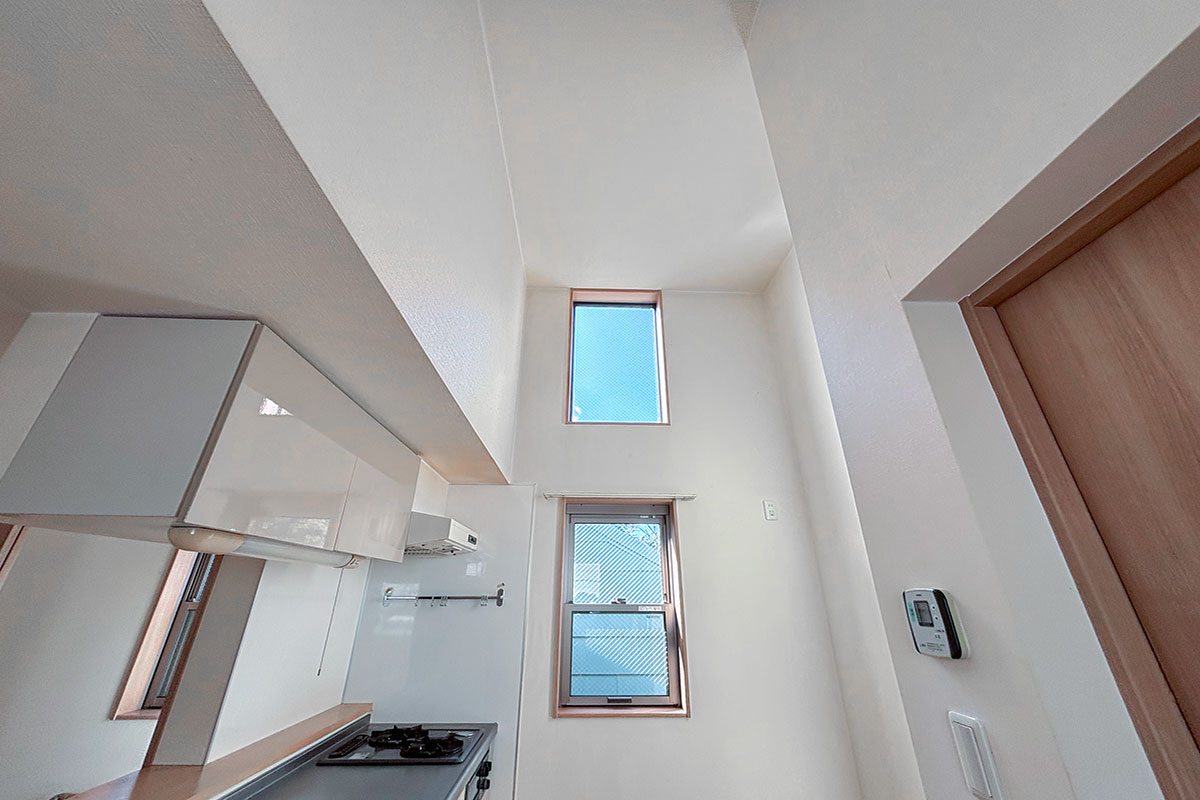 キッチンも縦並びで窓があり、上部から光が差し込んで開放的!