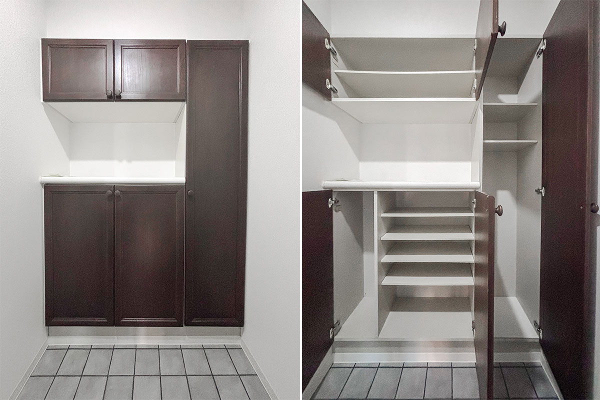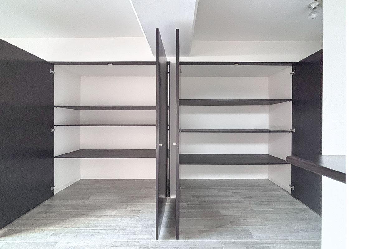 これだけの収納があれば、フリースペースはさらに広々と有効活用できそう。