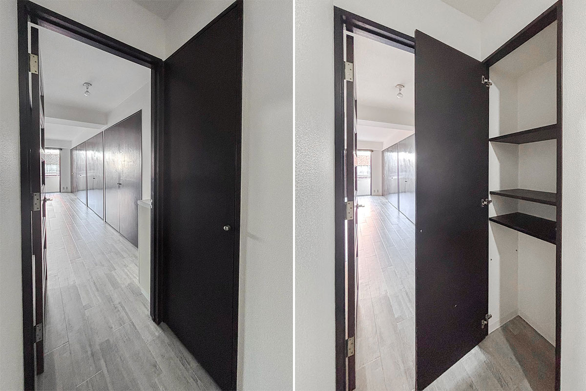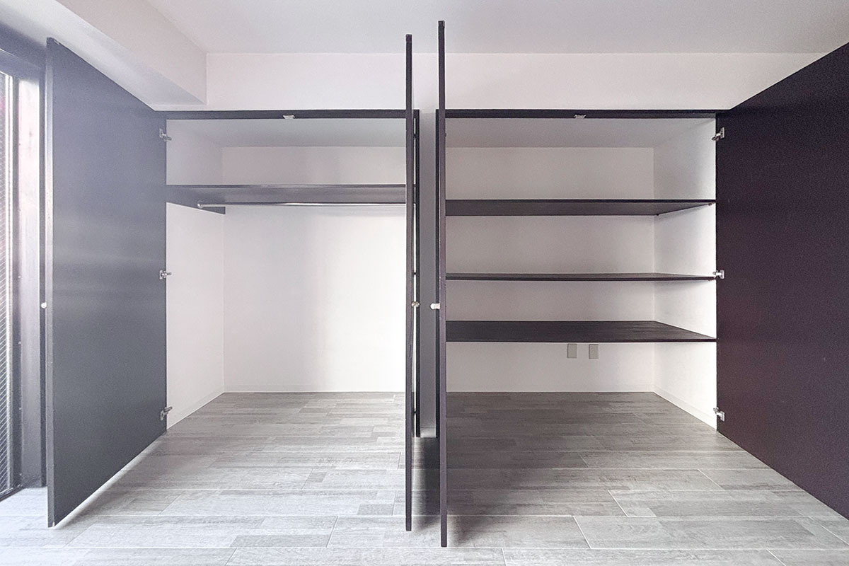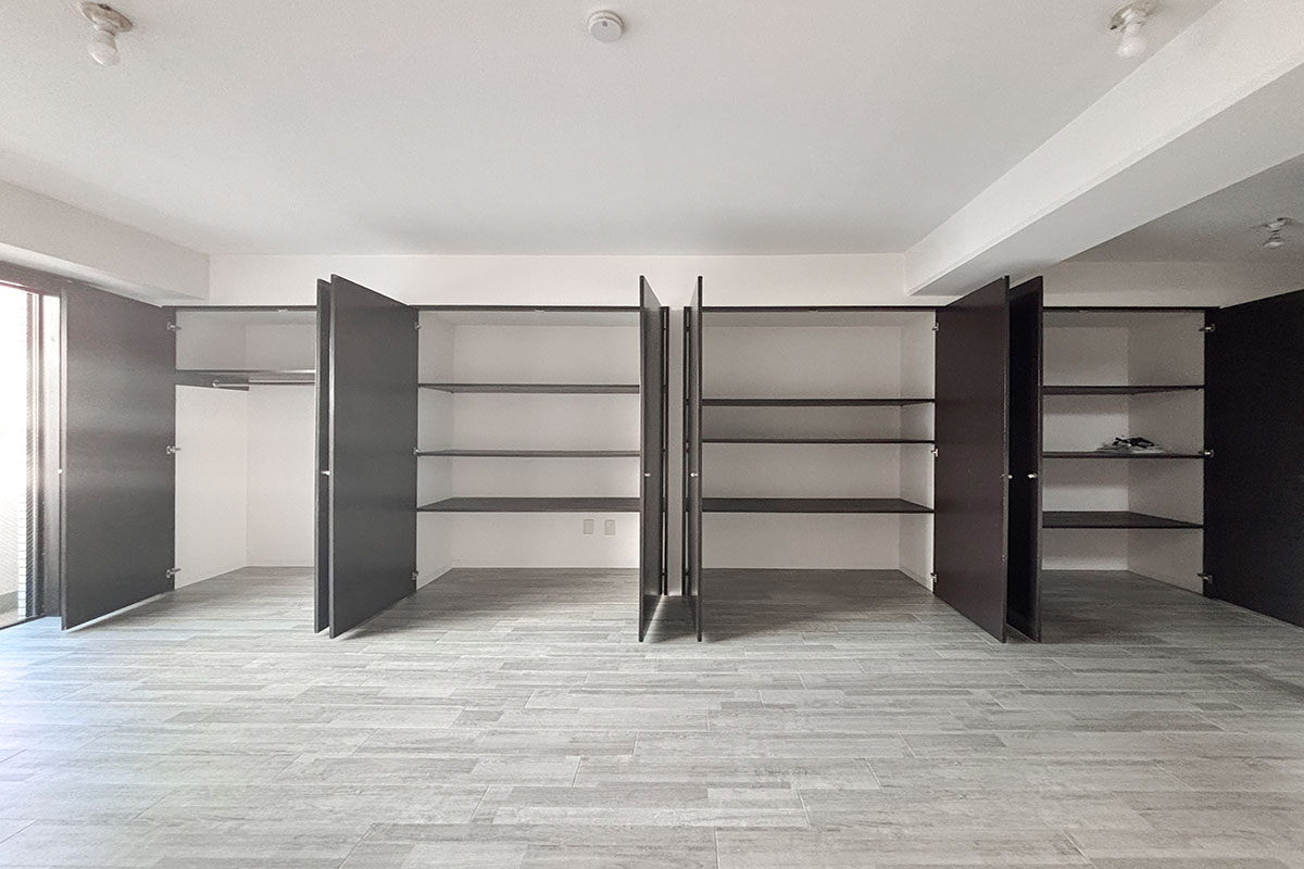 特筆すべきは、ずらりと一面にならぶ壁面収納!!