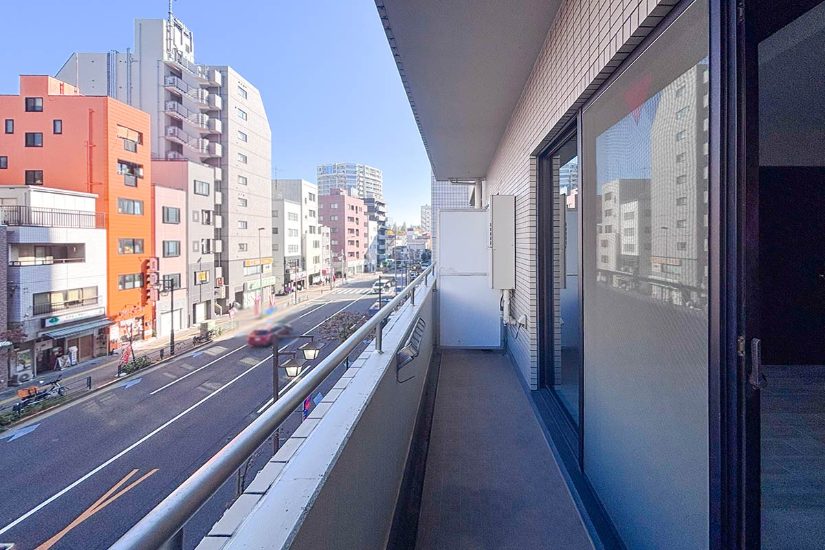 通り沿いのため、走行音等の聞こえ方は現地でご確認を。
