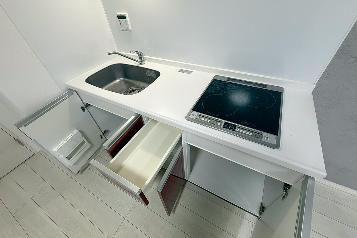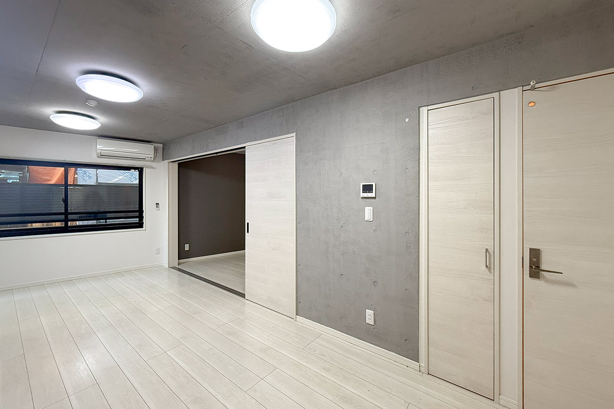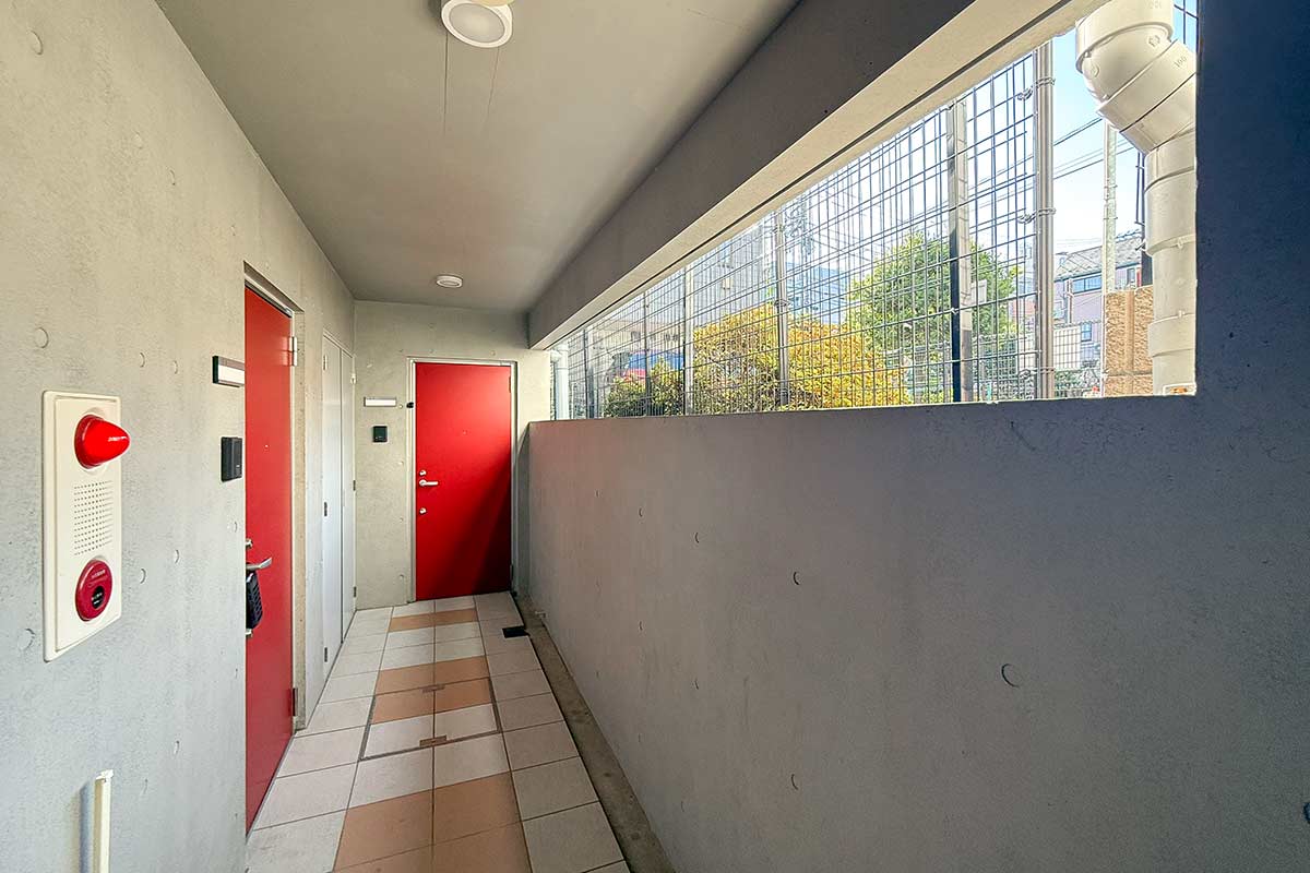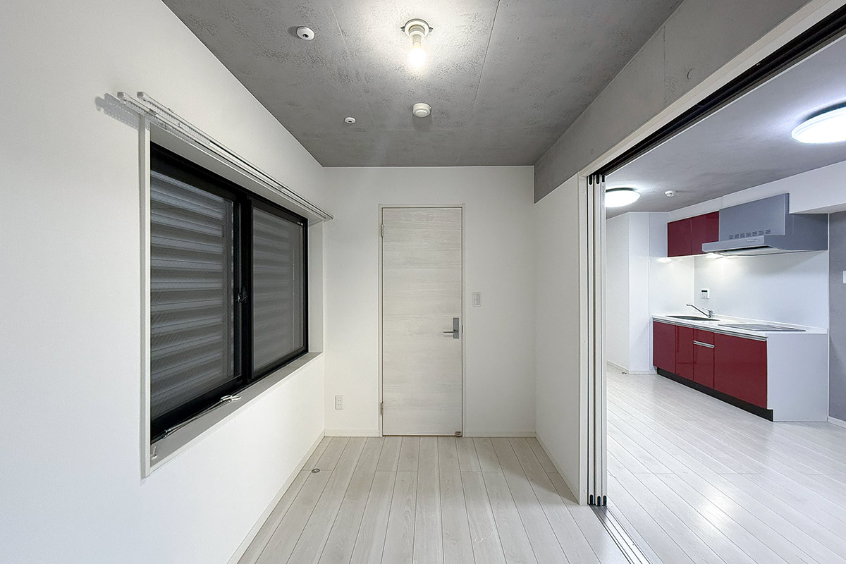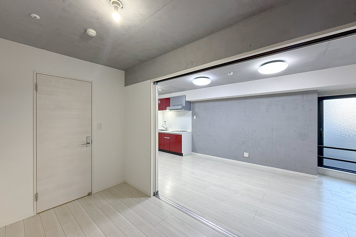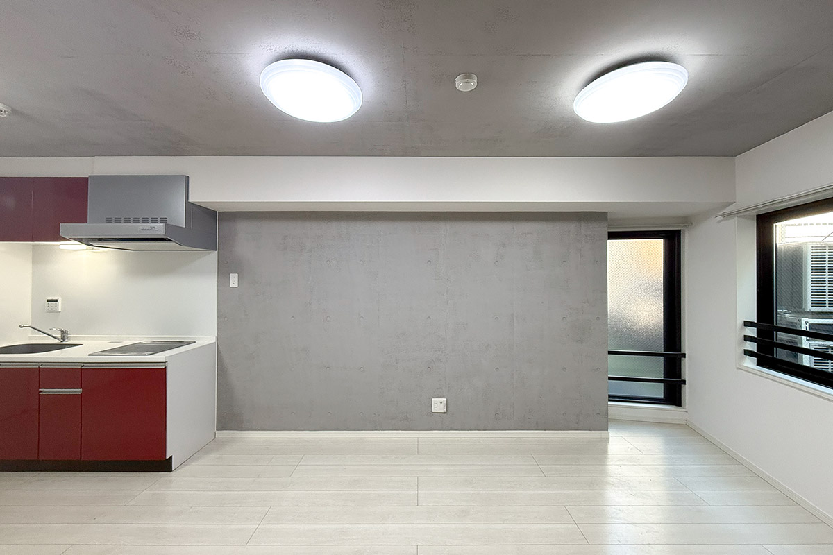 室内はコンクリートとアクセントカラーの赤をあしらった、シックなデザイナーズ仕様。