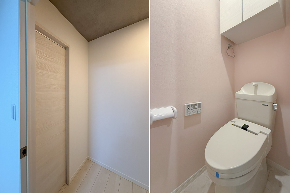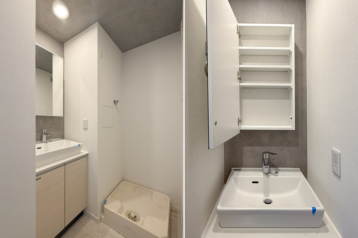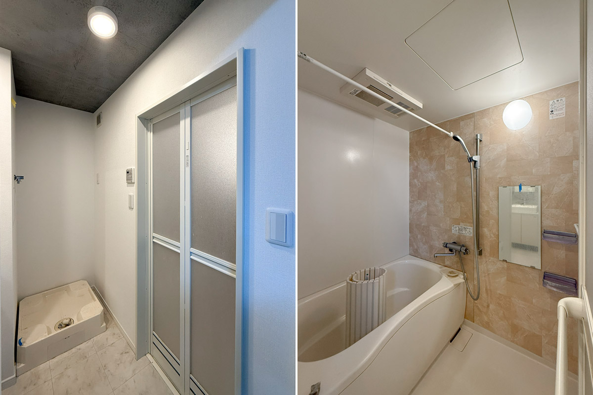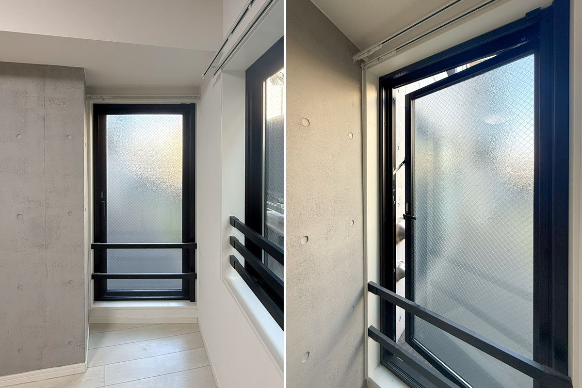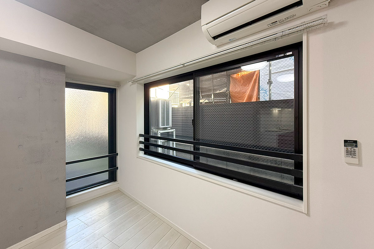 バルコニーが付いていないため、洗濯物は浴室乾燥機や窓際の物干しフックの活用を。